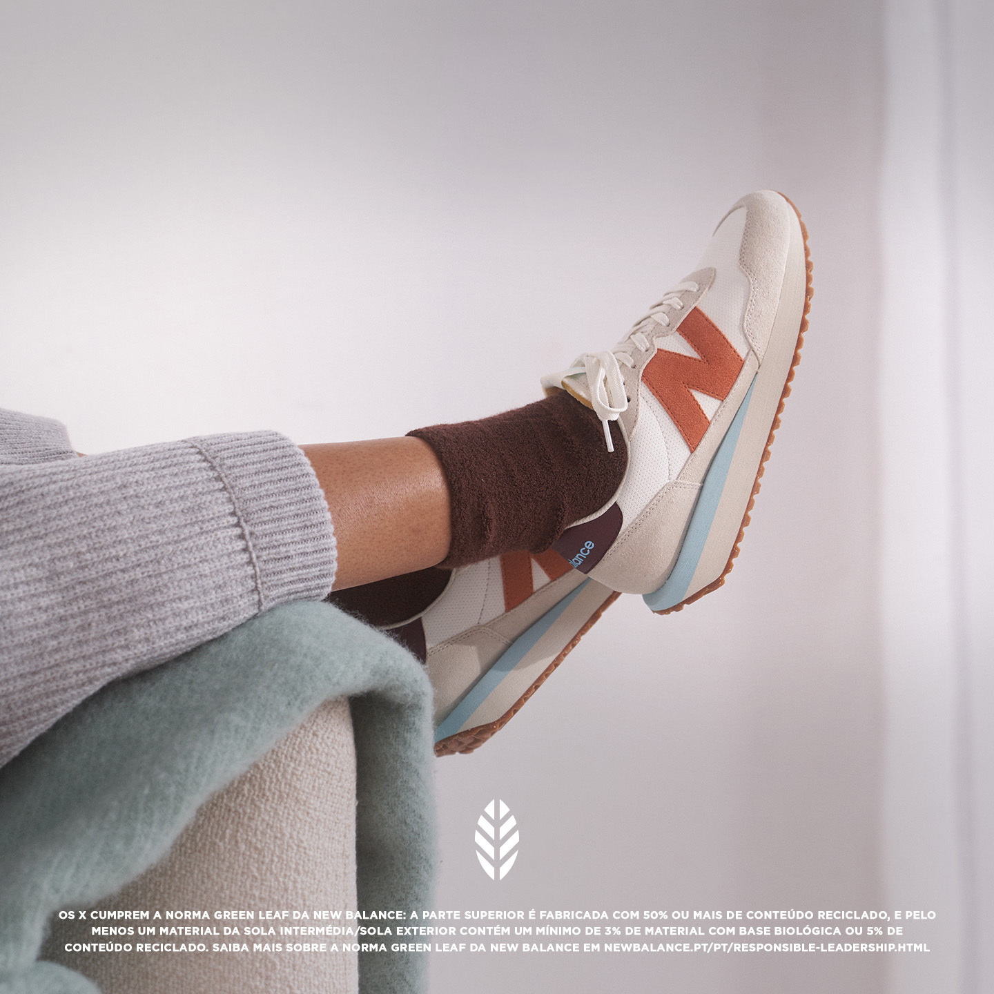 Na New Balance, os produtos são pensados de acordo com os princípios da sustentabilidade e consciência social, com o objetivo de proteger o meio ambiente e causar um impacto positivo no mundo. Sempre que vir o selo ‘Green Leaf’, em português ‘folha verde’, fica a saber que esse mesmo produto foi produzido com fibras e materiais ecologicamente mais corretos, isto é, materiais escolhidos com base nas suas características físicas e em práticas sustentáveis como, por exemplo, o poliéster reciclado e o algodão ecológico.