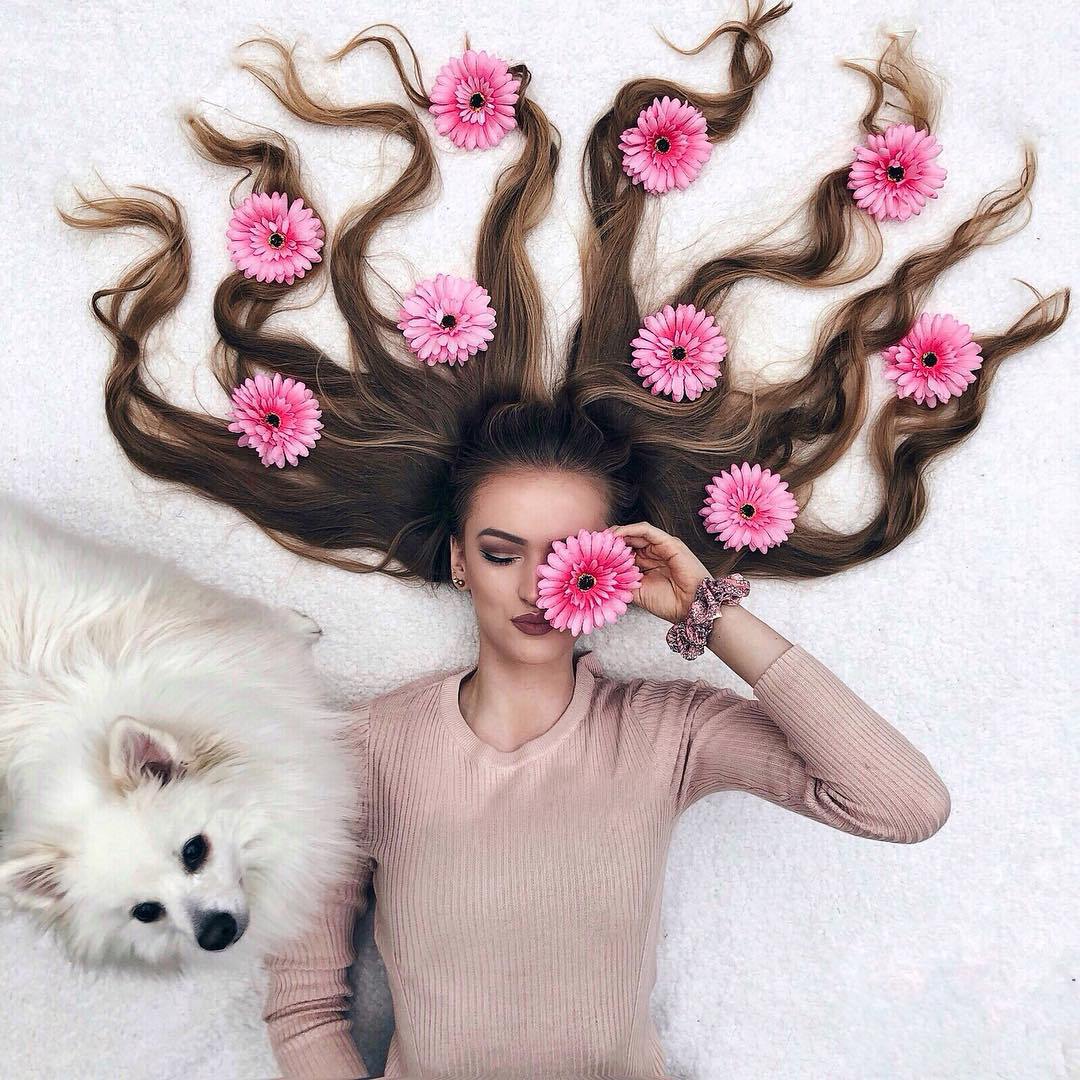 Se está sempre à procura de novas contas de Instagram para seguir, esta pode muito bem ser a próxima. Krissy Elisabeth vive na Holanda e tem um cabelo incrivelmente comprido. Mas é o que faz com esse atributo que é surpreendente: Krissy cria verdadeiros cenários manipulando o seu cabelo e elementos da Natureza, de flores, a pétalas ou meras folhas.