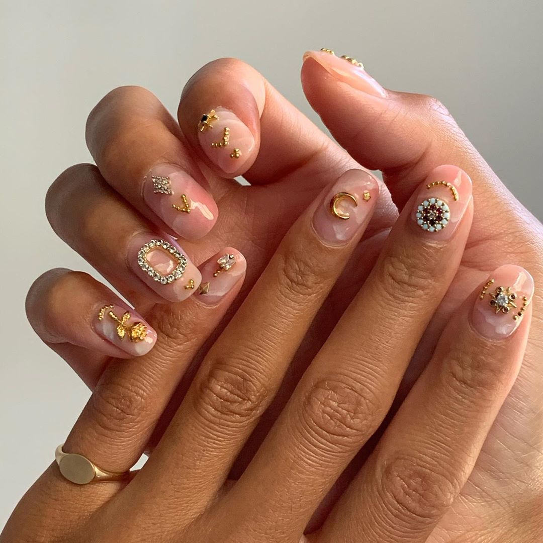 Há muito que a manicura se tornou uma verdadeira arte. Entre os mais variados desenhos, ao pormenor do trabalho, aos formatos extravagantes, sem esquecer, as aplicações que trouxeram ainda mais vida às unhas. Neste caso, trouxeram sofisticação, sendo o dourado o tom mais escolhido. À mistura vemos ainda alguns brilhantes ou aplicações que reproduzem as turquesas ou jade. Das minimalistas às mais extravagantes, uma coisa é certa, a Beleza está toda nos detalhes que fazem as unhas parecer uma verdadeira jóia. Vemos ainda ideias mais originais, como o mapa astral reproduzido na nail art, como é o caso da manicura da influencer Camila Coutinho.