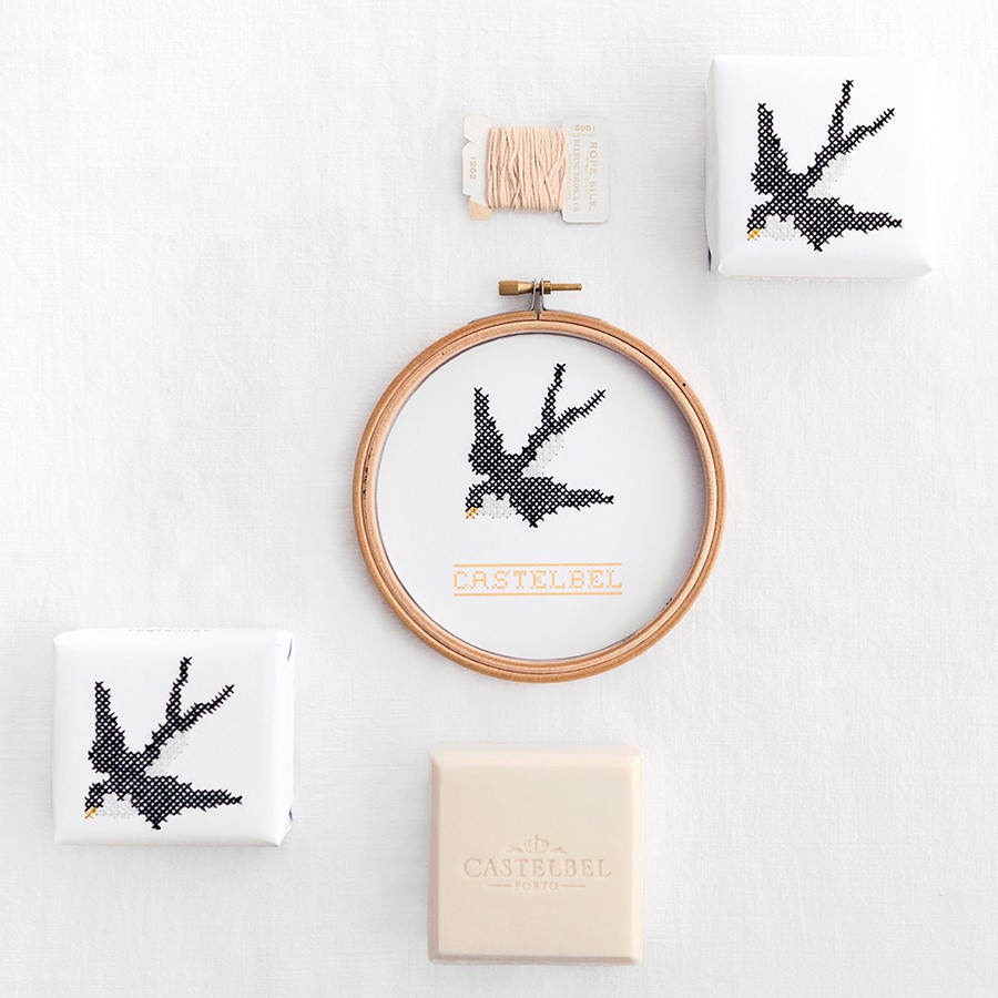 Juntando a arte de fazer sabonetes perfumados tradicionalmente aos bordados ponte de cruz, a Castelbel criou a belíssima coleção ‘Bordados’. Composta por cinco sabonetes, 100 % vegetais, cada um é embalado em papel decorado com uma ilustração que retrata alguns dos ícones da cultura portuguesa. Giro mesmo é que cada uma destas ilustrações é mesmo feita a mão, em ponto de cruz.