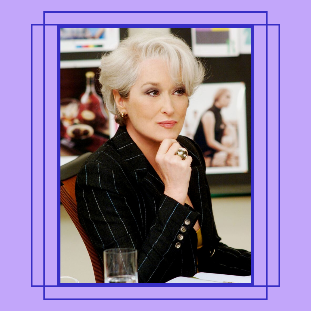 Sem dúvida que Miranda Priestly, interpretada por Meryl Streep, fez-nos questionar sobre a possibilidade de vir a trabalhar numa revista de moda. Porém, foi um verdadeiro ícone de Beleza, a começar pelo facto de assumir os cabelos brancos sempre com penteados elegantes e sofisticados. A maquilhagem também nunca desiludiu: natural, simples e luminosa.