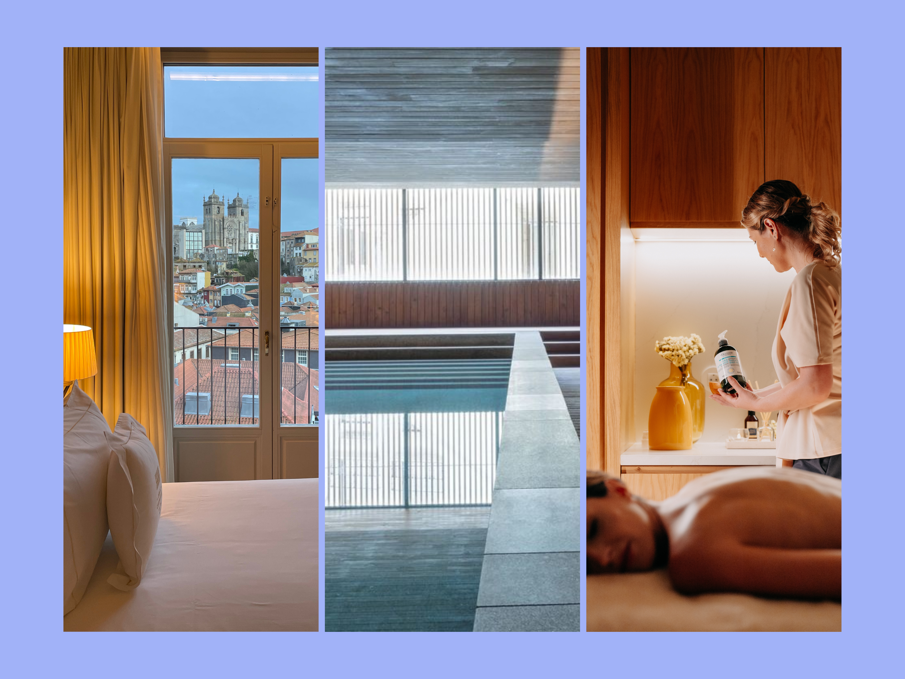 Reinventada para os novos tempos, a Casa da Companhia é agora um refúgio de luxo e bem-estar. Desde a receção até aos quartos e suites, cada detalhe reflete um design clean e sofisticado, com tons neutros e uma decoração elegante que transmite tranquilidade. Tivemos a sorte de ficar num quarto com varanda privada, com uma vista simplesmente incrível para a Sé do Porto e para a piscina exterior. Ficou a vontade de regressar num dia de melhor tempo, para mergulhar na piscina do terraço e aproveitar aquela vista privilegiada.